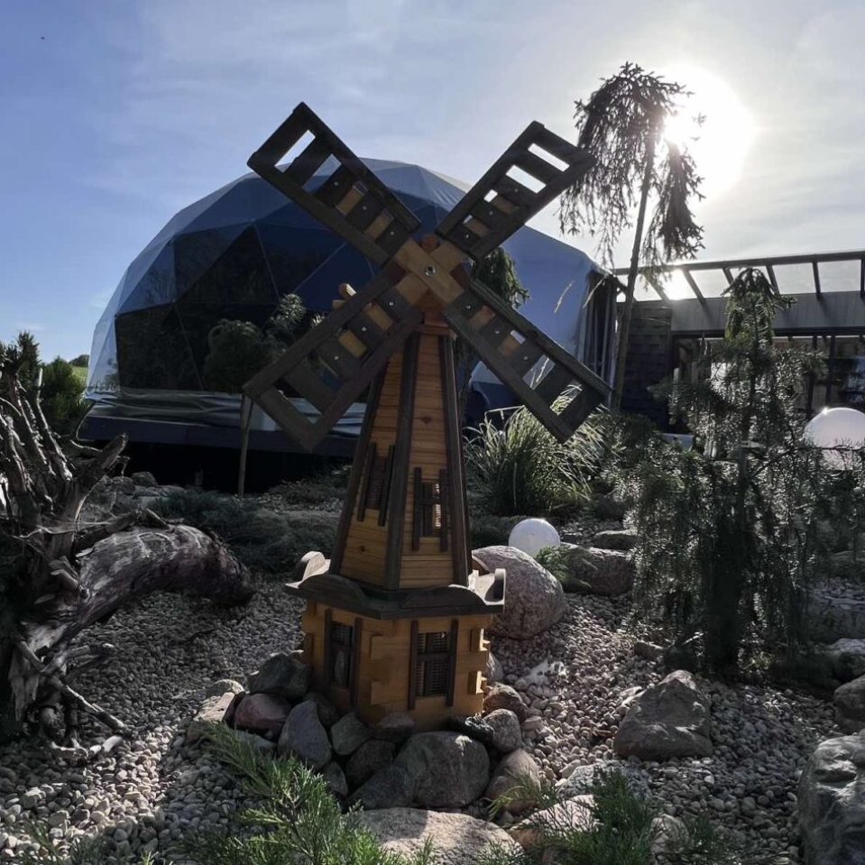 The «VIP Dome» project in Liutonys, Lithuania, is a distinctive and exclusive space designed for events, conferences, and other special occasions. The dome itself covers an area of 254 square meters, complemented by a VIP loft space of 100 square meters. Nestled in the picturesque Degučiai Valley, this modern structure is built using cutting-edge technology, offering a sense of luxury and elegance.