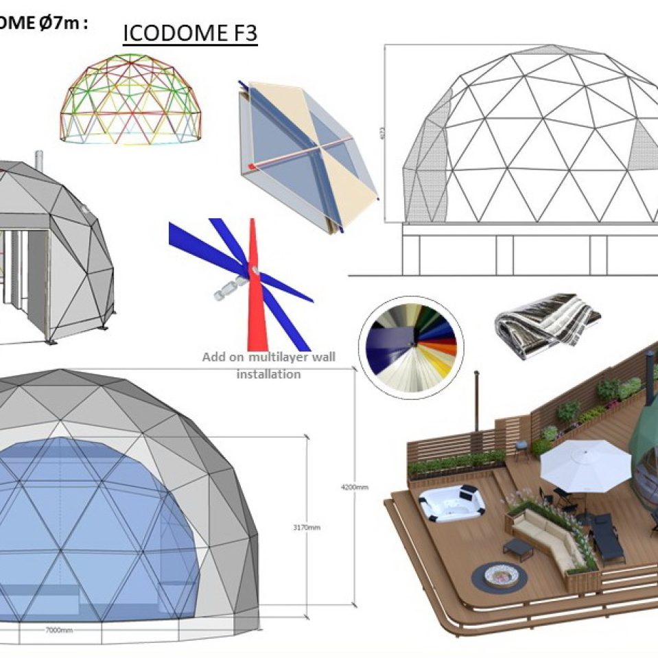 Аренда геодезического купола для наших партнеров в Андорре, Сольдеу на 3 дня с монтажом и демонтажем. Купол диаметром 8 метров, на 70% покрытый брезентом белого цвета, остальное – прозрачным брезентом.