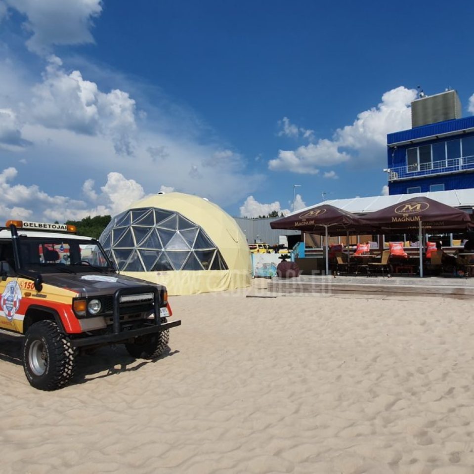 Introduction of this season, a 8 meter diameter dome of 50 m2 – GLAMPING DOME. One can watch the sunsets through the dome window during any weather. The dome is adapted for air temperatures of -30 to +80 degree Celsius and has a THERMIC.PRO13+ thermal membrane.