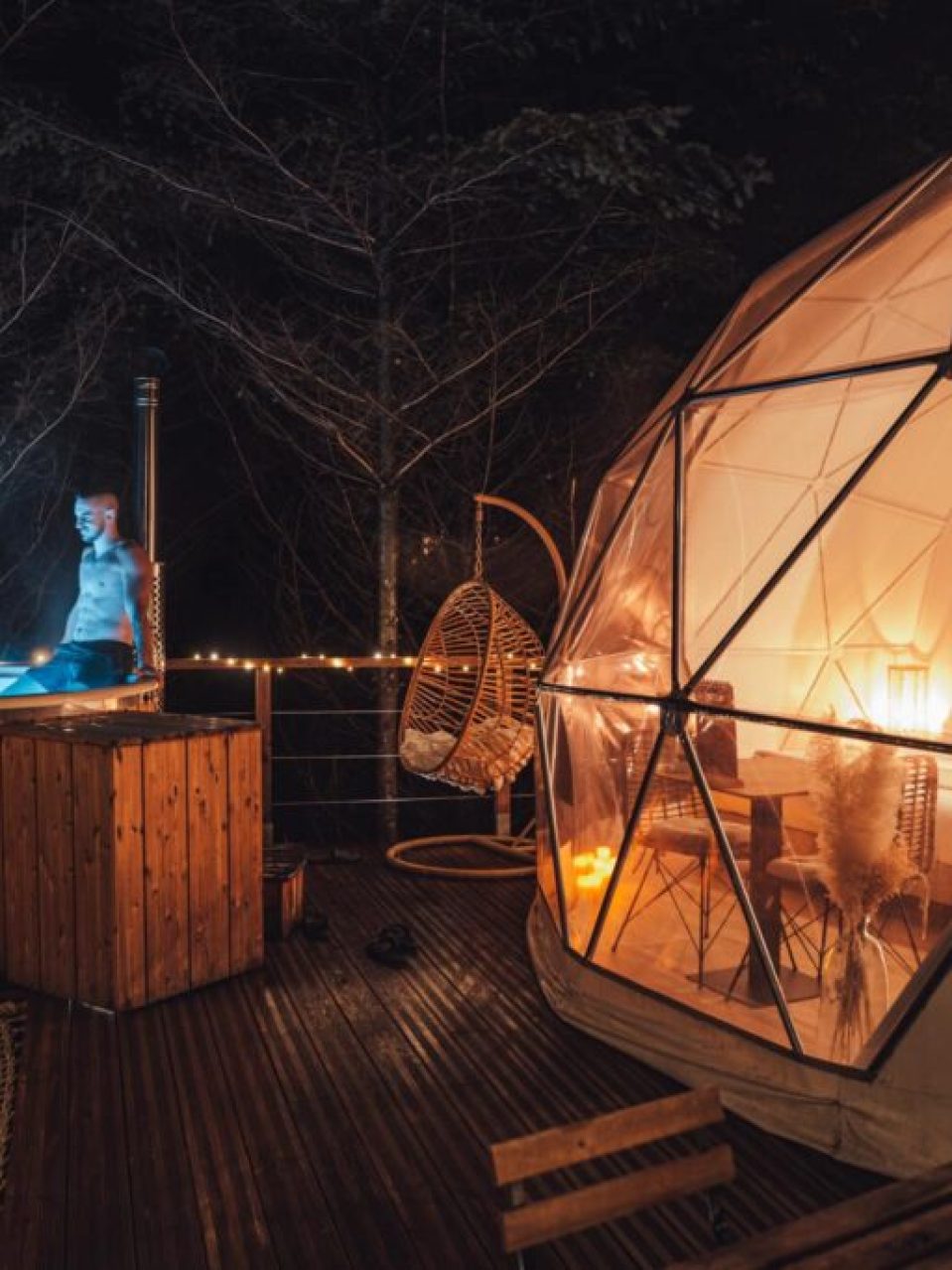 Each dome represents a new day, a new sensation. In one, you feel as if embraced by the earth, with natural wood and stone tones allowing you to forget the city noise. Another, hidden among the stars, invites you to gaze at the night sky as the lights fade over the mountain peaks. The third dome is a friend of the water element, with a warm thermal pool under the open sky, where the sound of water soothes the soul. The fourth is an oasis of light and energy, where every ray that penetrates through the window floods the entire space with vitality.