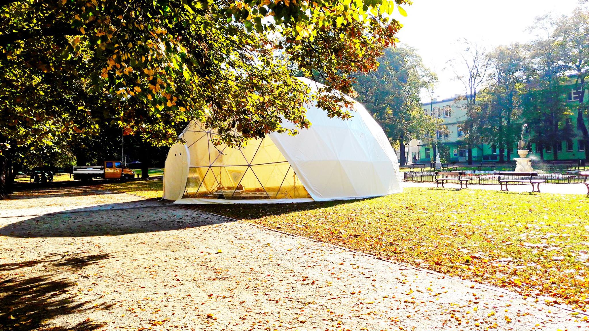 The geodesic dome structure allows you to create a light, well protected and very stable space. The main advantage of geodesic domes is the even distribution of stresses in all frame nodes.