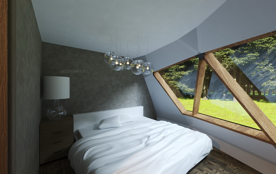 Панели треугольной формы, фасадные плиты COSMO PANEL 25мм (Базовая опция), структура панелей ПВХ-XPS-PVC. Крепежные элементы для плит с прокладкой. Комплект монтажного клея для герметизации. Белый фасадный клей-герметик для отделочных и декоративных работ. Жестяной подоконник по периметру для гидроизоляции фундамента. Система гравитационной вентиляции по нижнему периметру купола. Полный монтажный комплект, а также документация для сборки фасада.