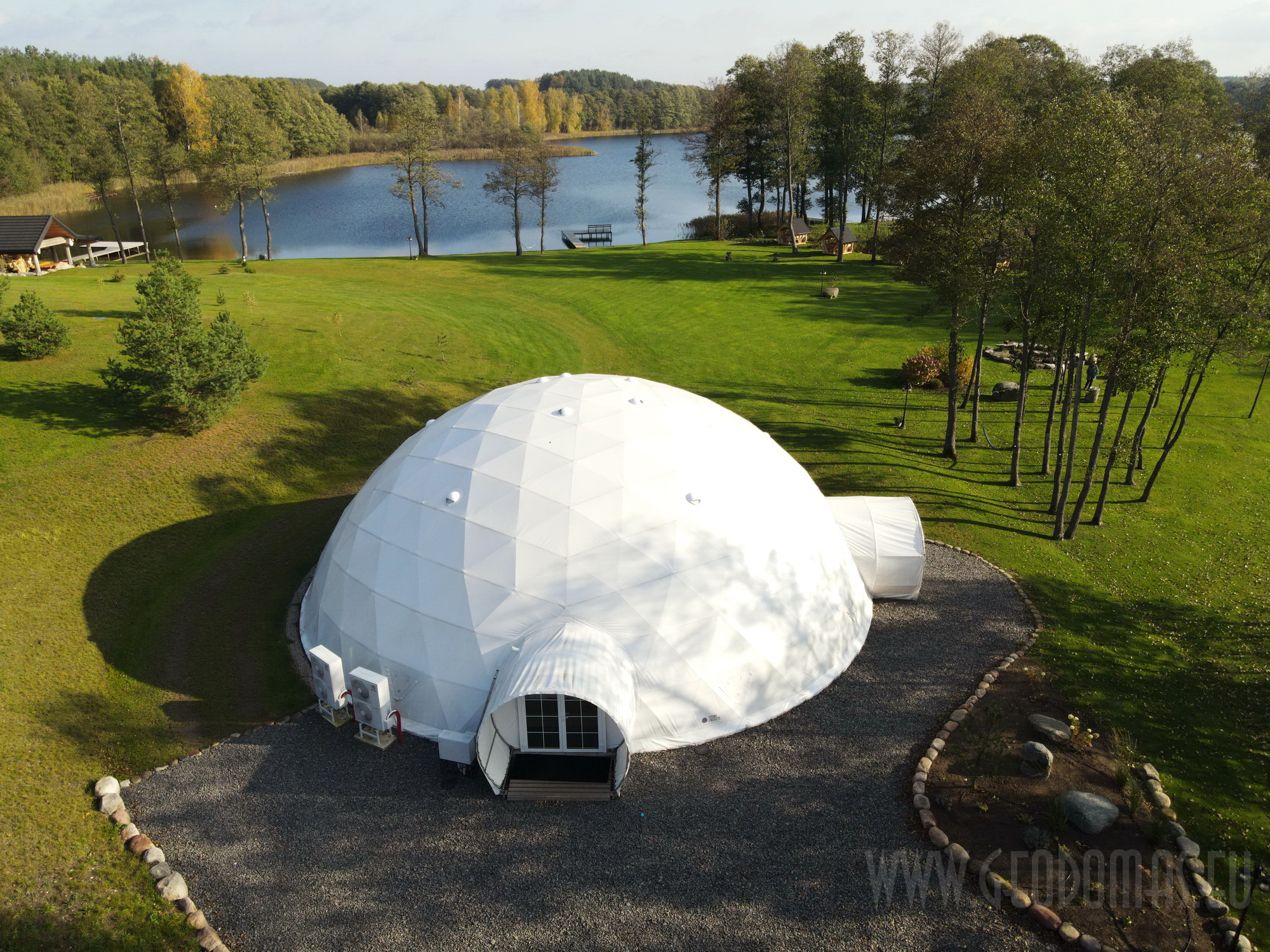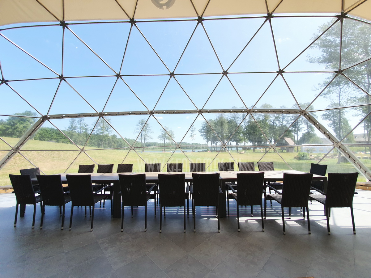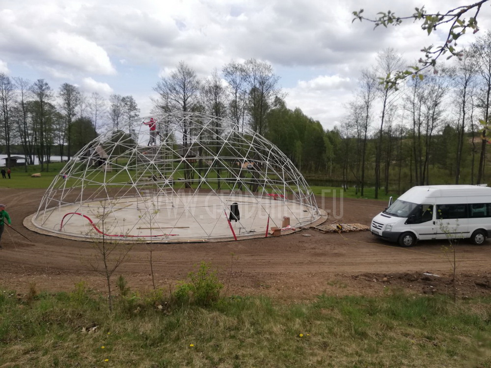 The geodesic dome structure allows you to create a light, well protected and very stable space. The main advantage of geodesic domes is the even distribution of stresses in all frame nodes.