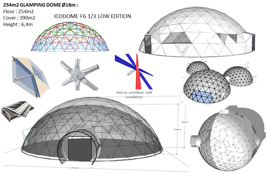 Glamping Domes do not require any columns, load walls or columns inside to allow the customers to use the maximum available area. By using steel structural elements structure becomes sustainable in terms of weather factors, livetime and loads.- The structures can be connected with tunnel paths;