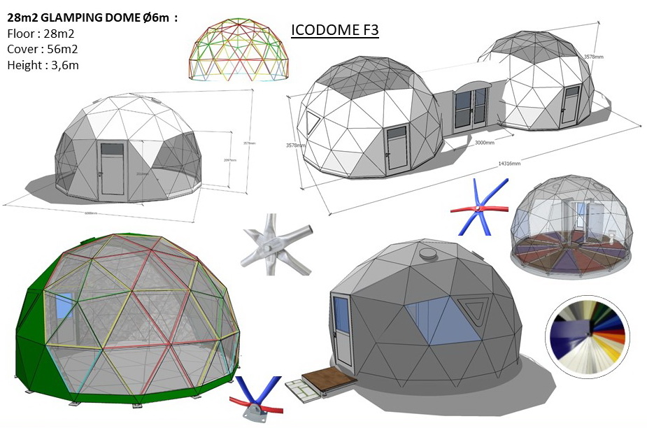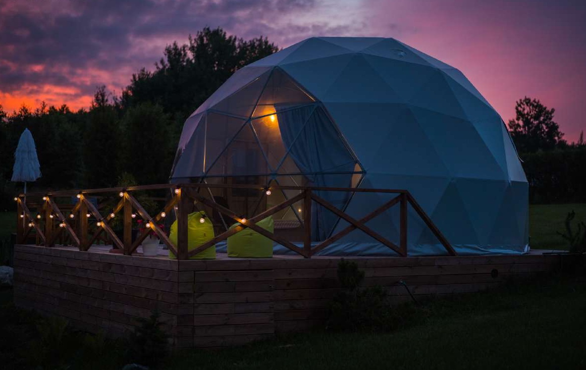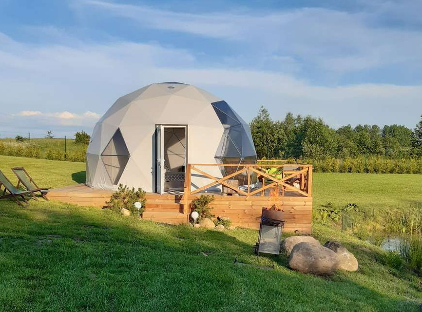 Метод геодезического купола позволяет создать легкое, хорошо защищенное и очень устойчивое пространство. Основным преимуществом геодезических куполов является равномерное распределение напряжений по всем узлам каркаса. Глэмпинг купола не нуждаются в колоннах, несущих стенах или стойках, что позволяет клиентам использовать максимум доступного пространства. Использование стальных конструктивных элементов делает конструкцию устойчивой к атмосферным воздействиям и нагрузкам.