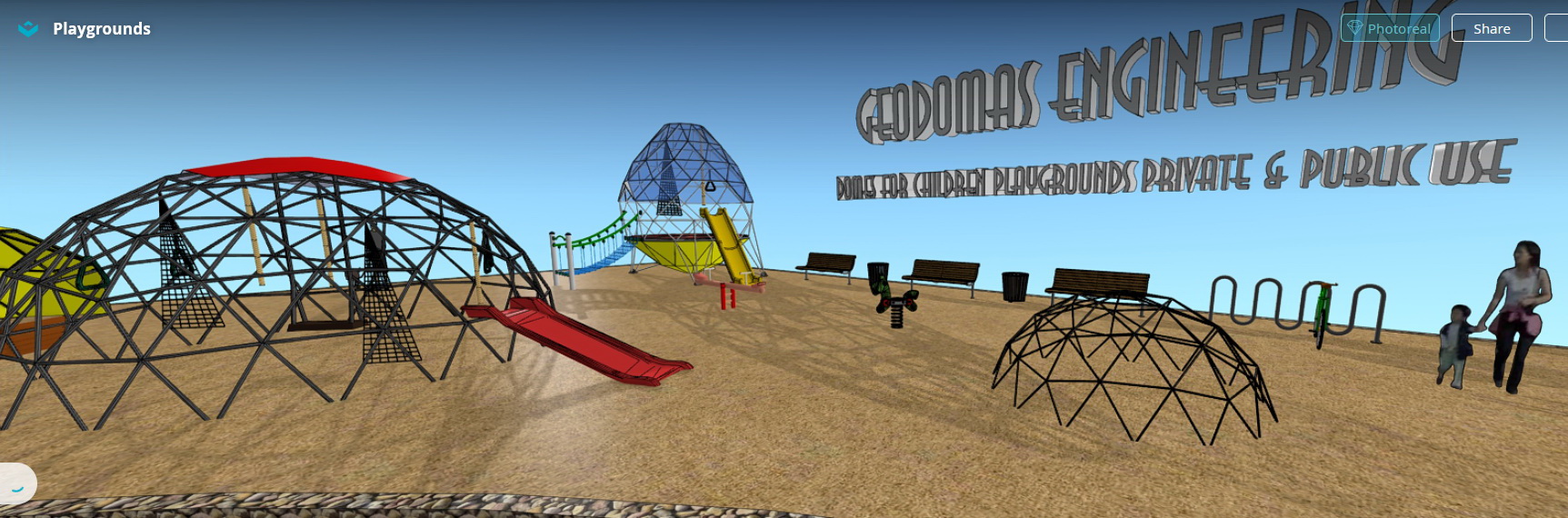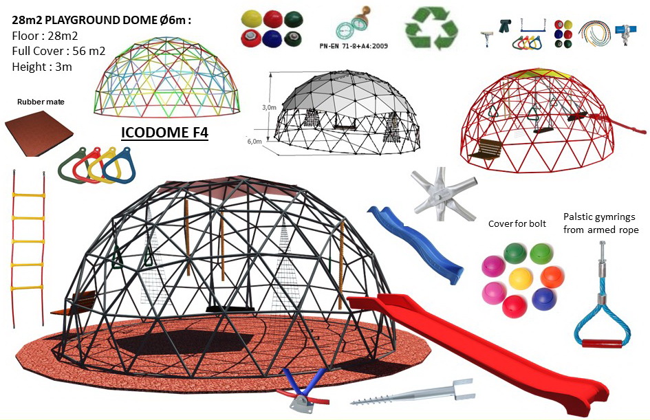 Dome shape playgrounds has a long term. Frame can be used of various materials: