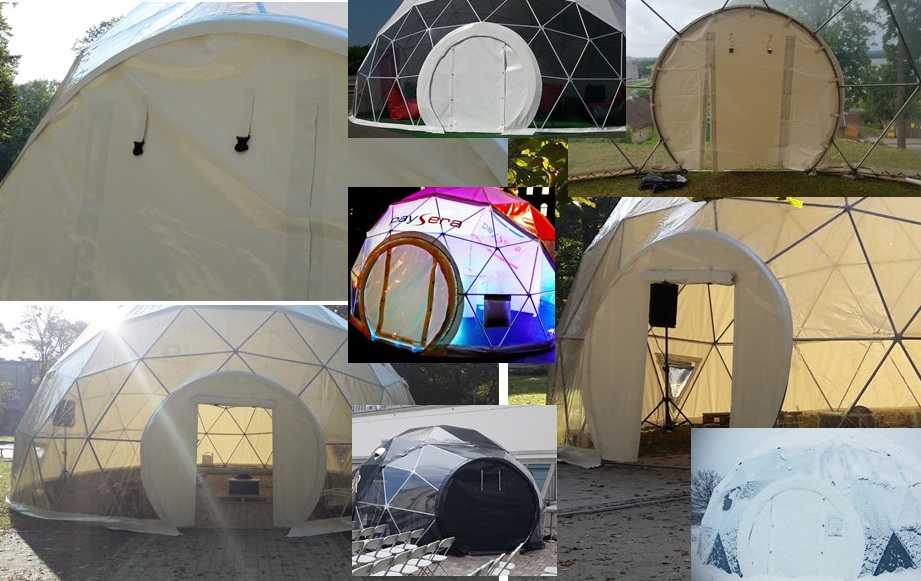 Dome covers we use the highest quality PVC tent fabrics. All our fabrics are certified and meet European Quality and Fire Resistance Standards. Detachable dome coating is known for its strengths and long service life. Due to the frequent weaving, the material is resistant to punctures, scratches and cuts. It is very easy to keep the dome covers clean. GEODOMAS durable covers are available in a variety of colors, resistant to mold and mildew, protected from UV rays and fire resistant. All fabrics have certifications to fire-retardancy NFP 92507: M2 ; DIN 4102: B1; EN 13501-1: B-s2-d0, BS 7837.