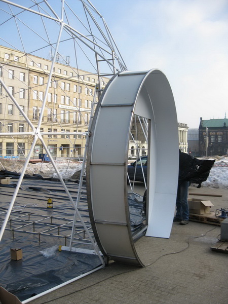 Metal, galvanized construction with a spherical shape