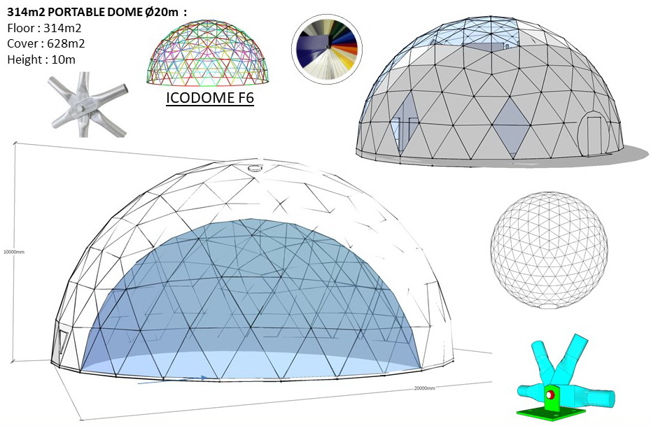 The geodesic dome structure allows you to create a light, well protected and very stable space. The main advantage of geodesic domes is the even distribution of stresses in all frame nodes.