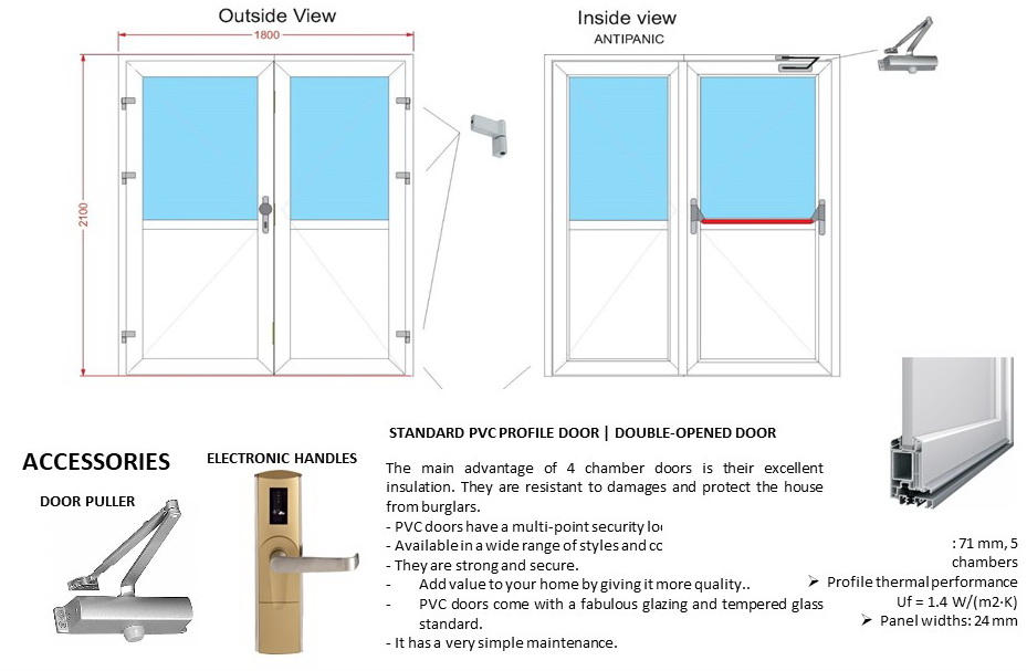 The main advantage of 71mm PVC profile doors is their excellent insulation. They are resistant to damages and protect the house from burglars.