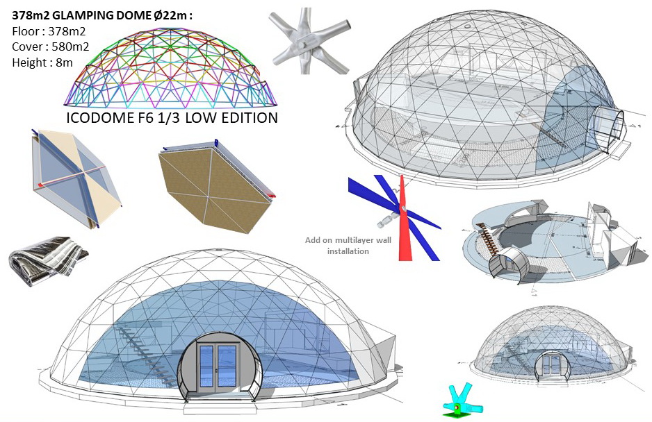 Glamping Domes do not require any columns, load walls or columns inside to allow the customers to use the maximum available area. By using steel structural elements structure becomes sustainable in terms of weather factors, livetime and loads.- The structures can be connected with tunnel paths;