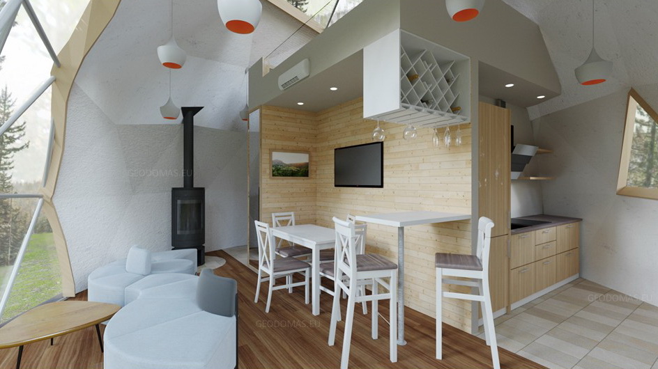 The geodesic dome structure allows you to create a light, well protected and very stable space. The main advantage of geodesic domes is the even distribution of stresses in all frame nodes.