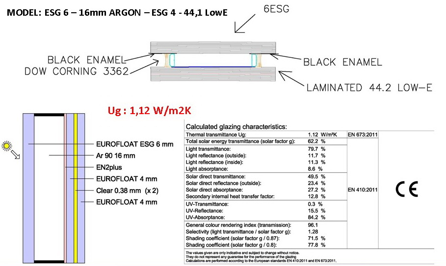 TRIPLEX GLASS PANELS | 6mm Glass – 16mm ARGON90% – 6mm Glass – 16mm ARGON90% – 44,1 EN2PLUS laminated