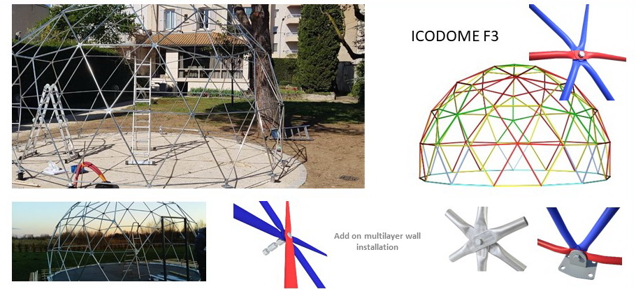 The geodesic dome structure allows you to create a light, well protected and very stable space. The main advantage of geodesic domes is the even distribution of stresses in all frame nodes.