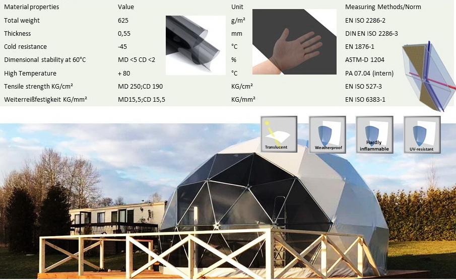 Foil PVC Window membrane Tinted for use in Glamping. Transparent PVC fabric, which perfectly transmits sunlight and illuminates the entire dome.