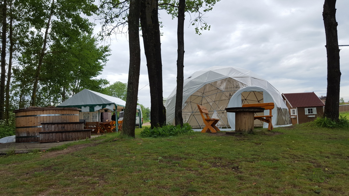 The geodesic dome structure allows you to create a light, well protected and very stable space. The main advantage of geodesic domes is the even distribution of stresses in all frame nodes.