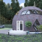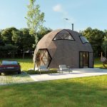 Triangular shaped panels, façade slabs COSMO PANEL 25mm (Basic option), PVC-XPS-PVC structure of panels. Fastening elements for the slabs with a gasket. Installation glue set for seal treatment. White facade sealant-glue for the finishing and decorative works. A tin perimeter window sill for the waterproofing of the foundation. Gravitational ventillation system at the lower perimeter of the dome. A full installation set, and documentation for facade assembly.