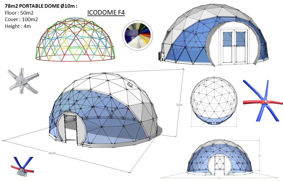 Metalinė, cinkuota sferinės formos konstrukcija | Kupolo formos paviljono rėmas pagamintas iš cinkuoto plieno, vieno varžto jungtys, apatinės jungtys kupolo tvirtinimui.