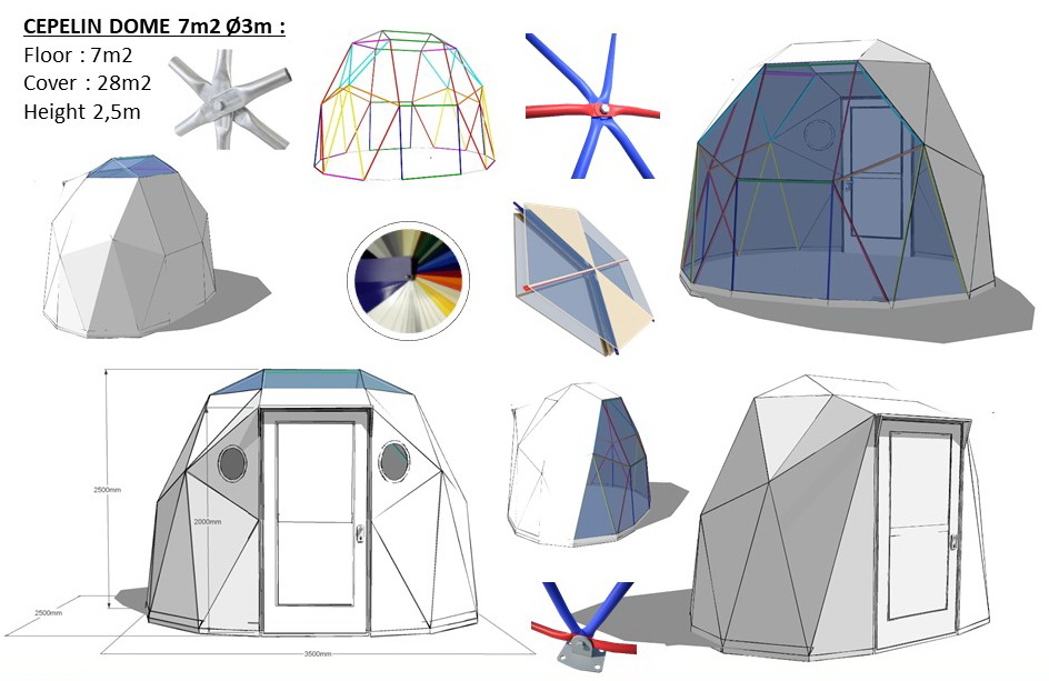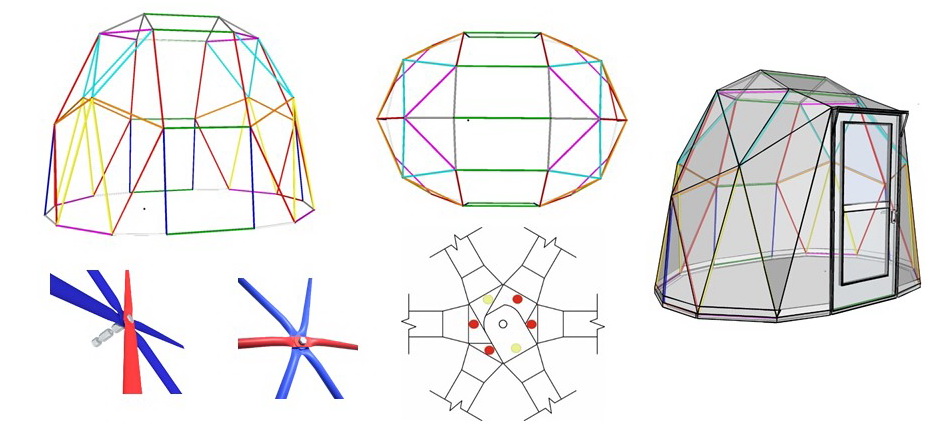 The geodesic dome structure allows you to create a light, well protected and very stable space. The main advantage of geodesic domes is the even distribution of stresses in all frame nodes.
