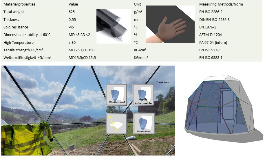 Foil PVC Window membrane Tinted for use in Glamping. Transparent PVC fabric, which perfectly transmits sunlight and illuminates the entire dome.