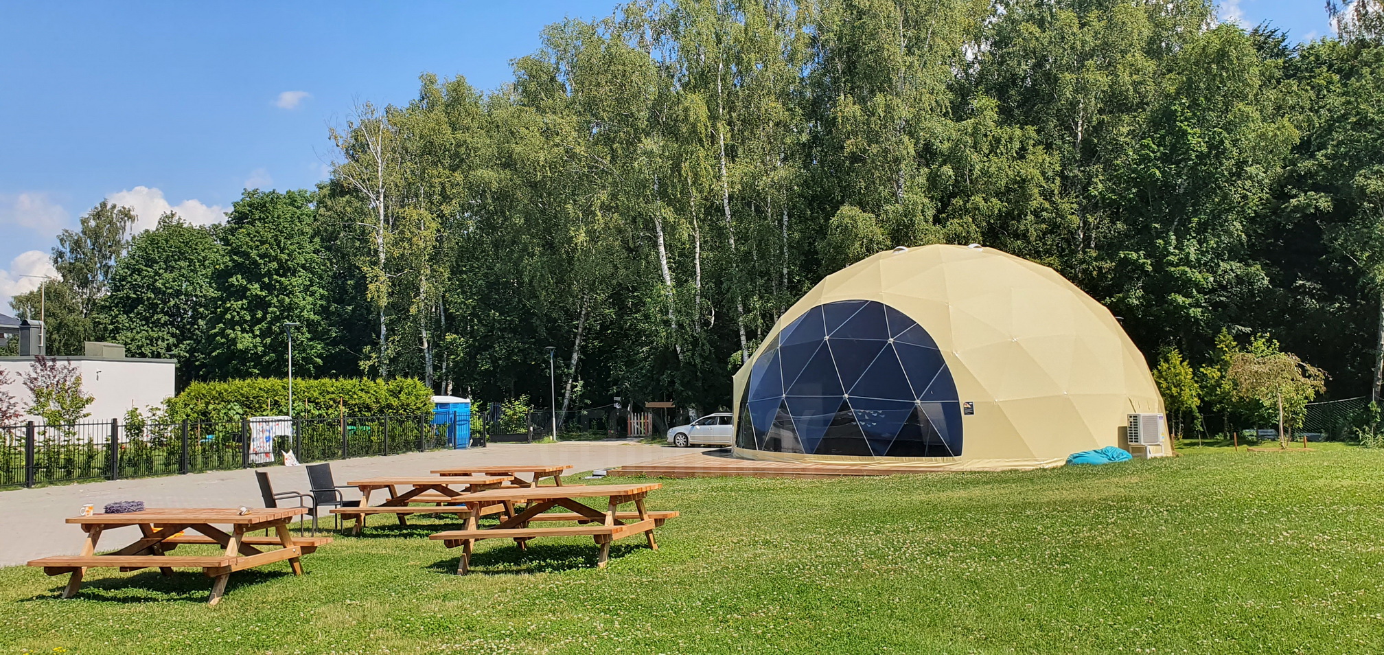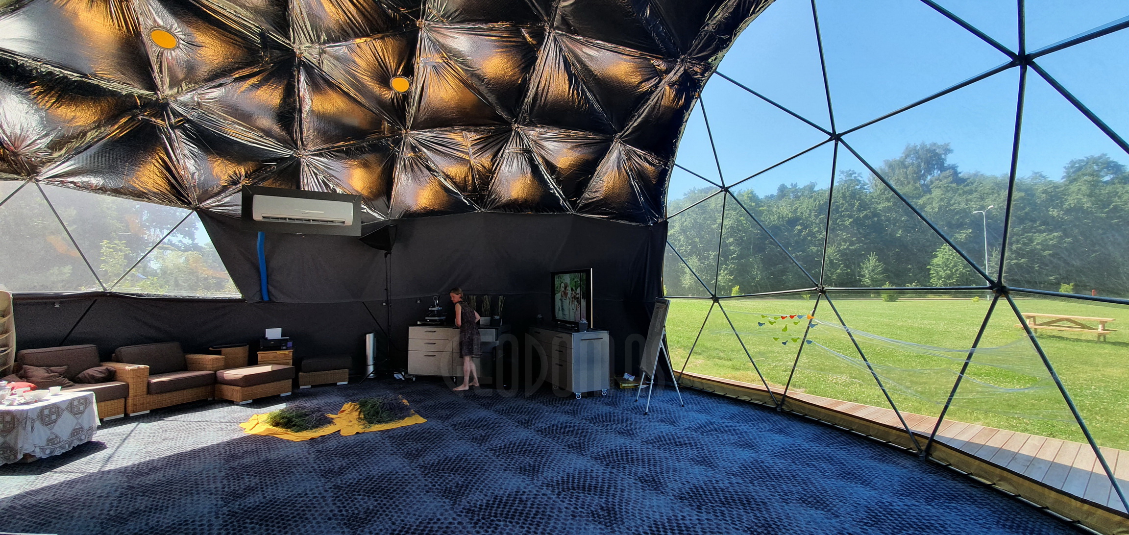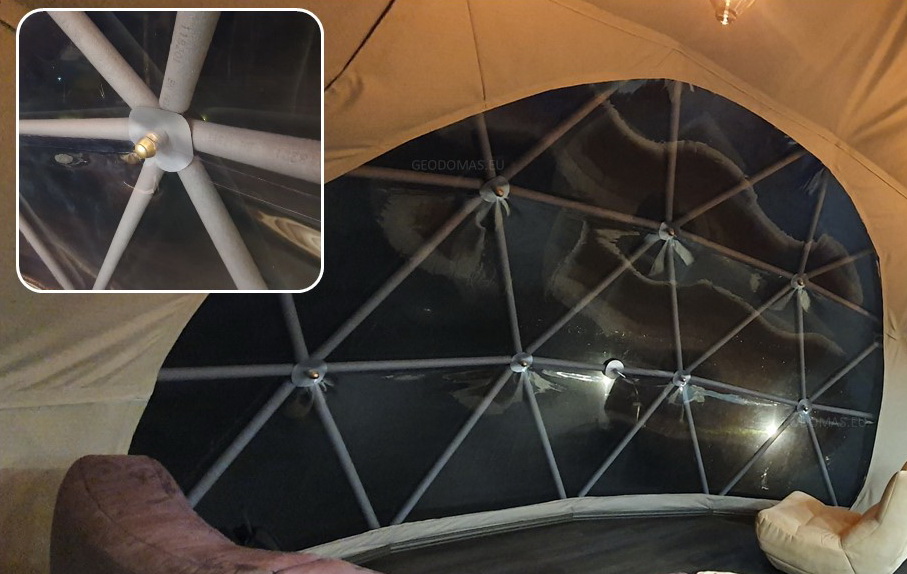 The geodesic dome structure allows you to create a light, well protected and very stable space. The main advantage of geodesic domes is the even distribution of stresses in all frame nodes.